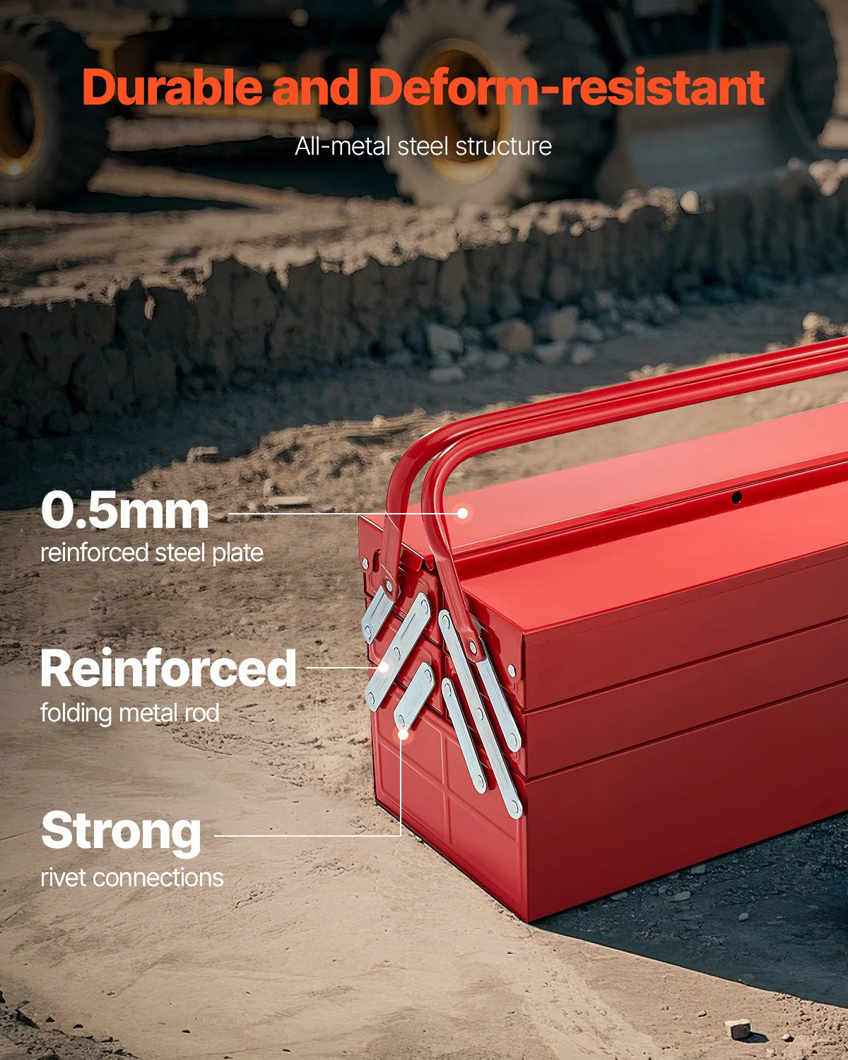 - Dual folding handles: Comfortable grips for easy transport, even when the toolbox is full.